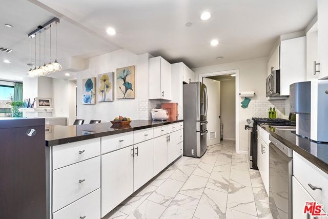 Tucked away in one of Los Angeles' most timeless neighborhoods, this rare 3-bedroom, 2-bath residence in Hancock Park is one of the largest units in the building, offering 1,630 sq of elegantly upgraded living space, plus a private extra storage area for added convenience. Unlike most units in the complex that remain in their original condition, this home was fully remodeled from floor to ceiling just a few years ago, featuring new flooring, fresh paint, LED recessed lighting throughout, and modern chandeliers. The spacious master suite, thoughtfully separated from the guest bedrooms for privacy, features a walk-in closet and a luxurious bathroom with a large soaking tub, separate shower, dual sinks, and private patio access. The chef's kitchen boasts granite countertops, custom cabinetry, stainless steel appliances, and a large pantry-a rare feature in this building. The open floor plan is framed by floor-to-ceiling, double soundproof UV-coated windows that fill the home with natural light while offering breathtaking city light and fireworks views from every room. Step out onto the wraparound balconies, accessible from all rooms, and take in the vibrant skyline. Conveniently located at the epicenter of both the Metro Purple Line and Crenshaw/LAX stations, offering direct access to LAX, Santa Monica, and Downtown LA, this residence captures the essence of urban sophistication and modern convenience. This is more than a home; it's a statement of timeless design and contemporary living-right in the heart of Hancock Park.