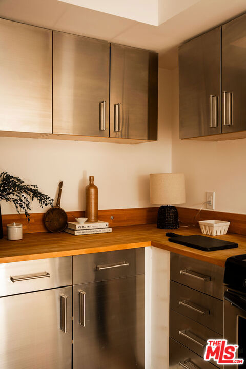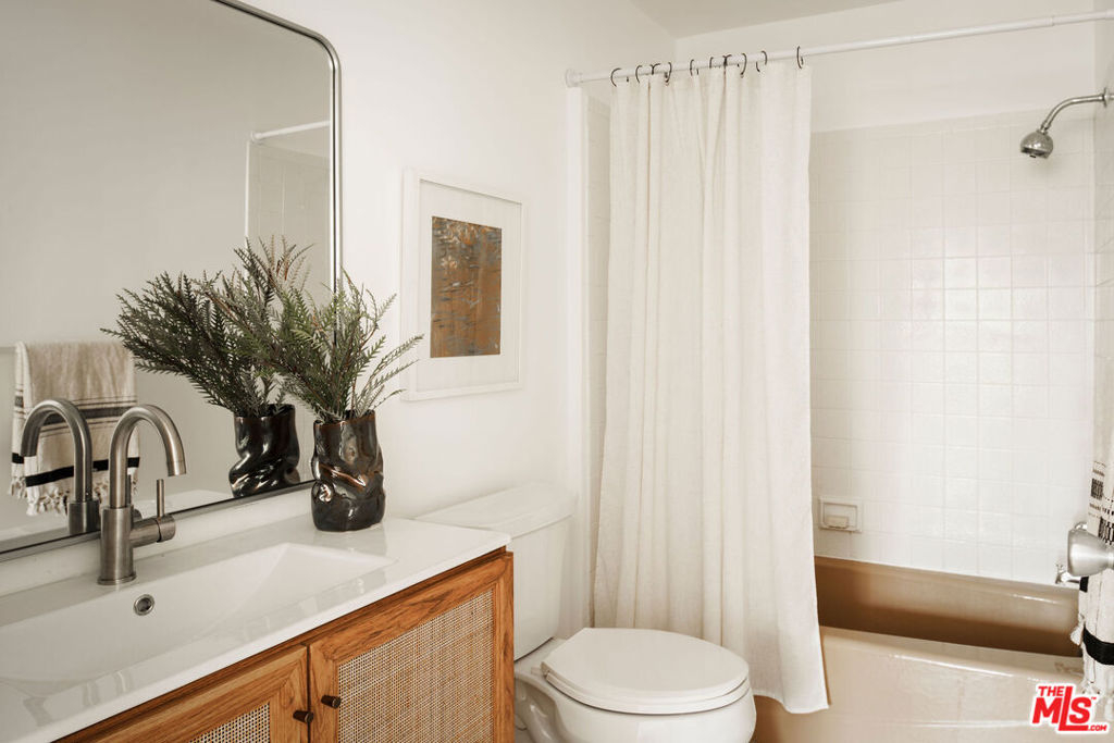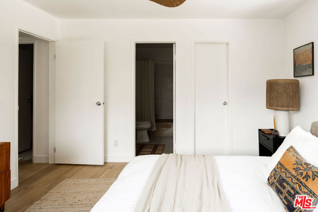 Bathed in natural light with views of tree tops and Bellevue Park, this upstairs rear unit captures the effortless, creative spirit of Silver Lake. With its own private entrance and staircase, it feels tucked away yet just moments from the vibrant pulse of Sunset Junction. Upon entry the open floor plan includes two spacious bedrooms and tasteful updates throughout such as butcher-block counters, stainless-steel cabinetry, new bathroom vanities, new lighting, fresh paint and new engineered-wood floors. This warm and inviting atmosphere leaves room for the next owner to make it their own. Below the unit, a private laundry room adds everyday convenience along with two parking spots. In the evenings, stroll with your dog to the park or meet friends for dinner at neighborhood favorites like Bacari, Pine & Crane or Night + Market Song. The vibe is relaxed, stylish, and unmistakably Silver Lake where community, creativity, and comfort blend effortlessly.