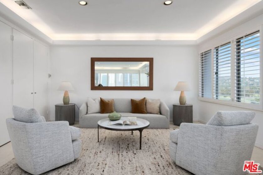 Once in a great while does an expansive Penthouse such as this become available on Los Angeles' famed Wilshire Corridor. Now for sale for the first time in over forty years, this very special condominium home offers an unusual amount of elegant, sun-bathed space with dazzling forever views from most every room. The wide and welcoming formal foyer is ideal for showcasing art. In the north wing, find a very spacious, well-planned kitchen with a butler's pantry and a sweet breakfast area. Adjacent is the large formal dining room with seating for twelve and access to the northern terrace, with its serene views of the Los Angeles Country Club greens, its views of the wooded mountains and hills and its views of the beautiful Bel-Air and Holmby Hills residential neighborhoods to the north. There's also an open family room in this wing, perfect as an office or as a casual TV room. The south wing features a vast living room complete with a decorative fireplace and a very pub-like, sit-down bar. The large southern terrace is accessed here and is the perfect spot for lounging comfortably while taking in the dramatic, sparkling city lights vistas stretching all the way to the ocean. This wing also features a second kitchen and a laundry area. The primary suite is enormous and private with its own sitting room, its dual baths and its dual closets. Equally private is the ensuite guest bedroom. Two guest powder baths and an abundance of storage space complete this fabulous floor plan. Since this home is the product of having combined two units many years ago, there is flexibility in the floorplan should one wish to potentially capture additional bedrooms or make other changes. The very central location is quite proximal to UCLA and to Beverly Hills, Westwood, Century City and Brentwood and all the fine shopping and dining each area affords. Coveted inclusion in the Warner Avenue Elementary School district. The Wilshire- Comstock is a well-regarded, full-service building with around-the-clock doormen. Its location is extra special since ingress and egress is on quieter Comstock Avenue versus on busy Wilshire Boulevard. Please see listing sheet for a full roster of amenities.