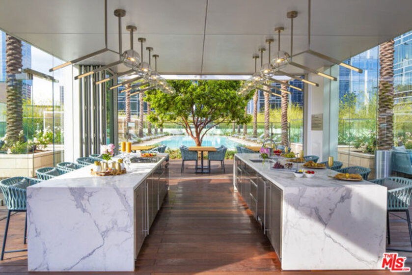 From the 22nd floor, the Los Angeles skyline stretches far and wide. This stunning corner residence wraps you in floor-to-ceiling glass on two exposures, delivering panoramic city views that transform from golden daylight to a glittering nighttime skyline. A generous open-concept 2BR/2BA features warm French oak flooring, clean architectural lines, and a grand living area oriented to keep the view front and center. The kitchen features integrated Miele appliances, Caesarstone countertops, and custom Italian cabinetry with LED lighting and a custom island with beverage refrigerator. Baths are appointed with Hansgrohe and Duravit fixtures and custom vanities. A Nest Learning Thermostat completes the package. Metropolis spans an entire city block in vibrant South Park and offers 40,000+ SF of resort-style amenities, including the Met Nine clubhouse, junior Olympic-sized pool and spa, Skypark with fire pit, fitness center with TechnoGym equipment and yoga studios, screening room, business center, dog park, and 24/7 lobby ambassador service. Located moments from Crypto.com Arena and L.A. LIVE. Incentives up to $40,000 available. Portfolio financing available.