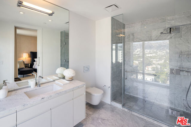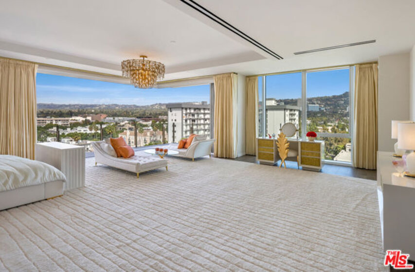 Set high on the 11th floor, this rare corner residence is not the penthouse yet lives with the presence of one, wrapped in glass and capturing spectacular views in every direction. A private dual elevator opens to an arrival foyer that sets the tone for more than 5,000 square feet of contemporary interiors suspended above the city and surrounded by floor-to-ceiling glass. Expansive living areas unfold with ease, framed by large wraparound balconies that capture sweeping vistas from downtown Los Angeles to the Pacific Design Center and Hollywood Hills. Light shifts throughout the day across the double living room, family space, and formal dining area, each flowing effortlessly into one another while maintaining a sense of scale and distinction. The kitchen is crafted as both a workspace and a retreat, with a large laundry, full bath, and flexible bonus room discreetly concealed behind. A richly composed powder room adds refinement, while ample storage is seamlessly integrated throughout. The primary suite is a sanctuary in its own right, commanding cinematic views that stretch across the city. Dual baths are individually appointed, including a soaking tub positioned before the skyline, accompanied by walk-in closets and a dedicated vanity area. Two additional guest suites, each with marble-clad baths and walk-in closets, also feature magical views both day and night. Life within this Four Seasons residence is matched by the service and environment beyond. With interiors by Martyn Lawrence Bullard, just fifty-nine homes share access to resort-style amenities: a pool framed by cabanas, a private restaurant with twenty-four-hour in-room dining, concierge and valet, and a dedicated property management team whose reach extends from safeguarding the residence while away to orchestrating a stocked kitchen or private jet on return. Set at the nexus of West Hollywood and Beverly Hills, moments from celebrated dining, shopping, and nightlife, it is a home that carries the rare equilibrium of architectural presence, five-star service, and absolute discretion.