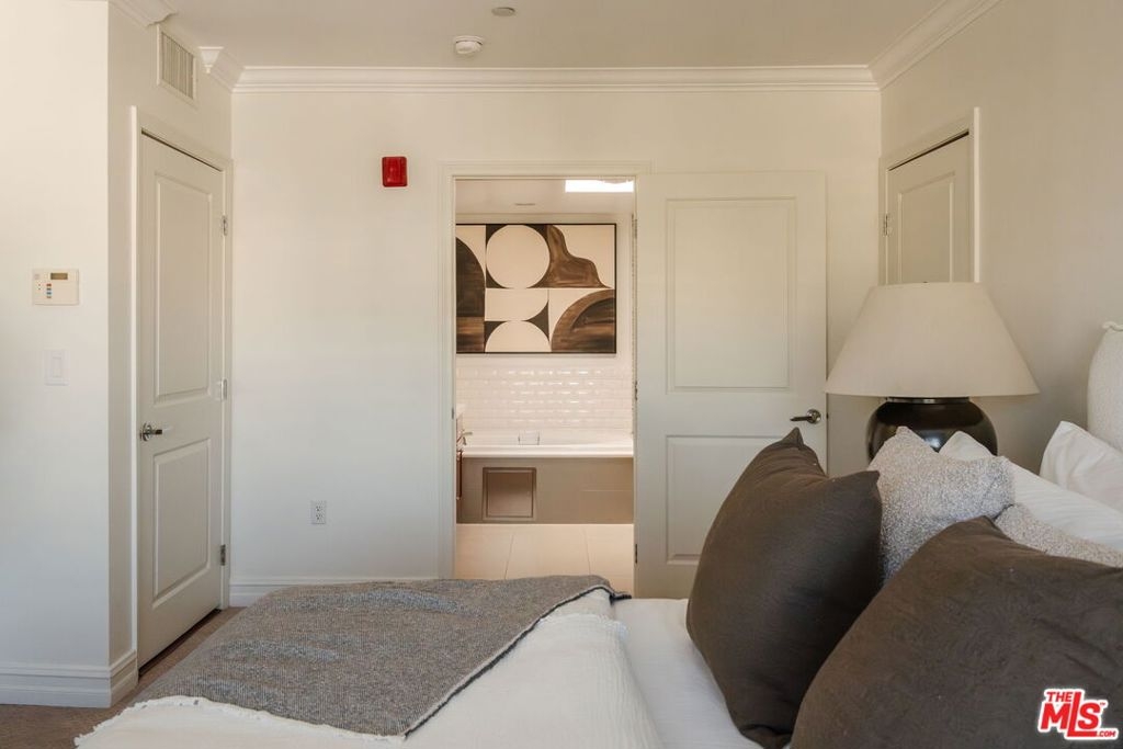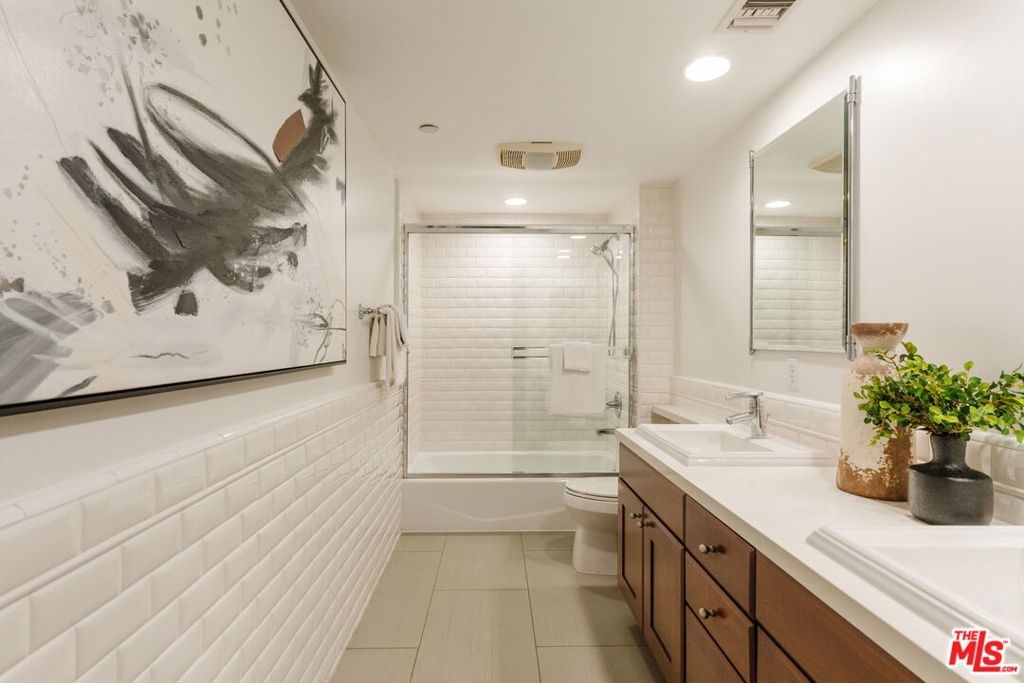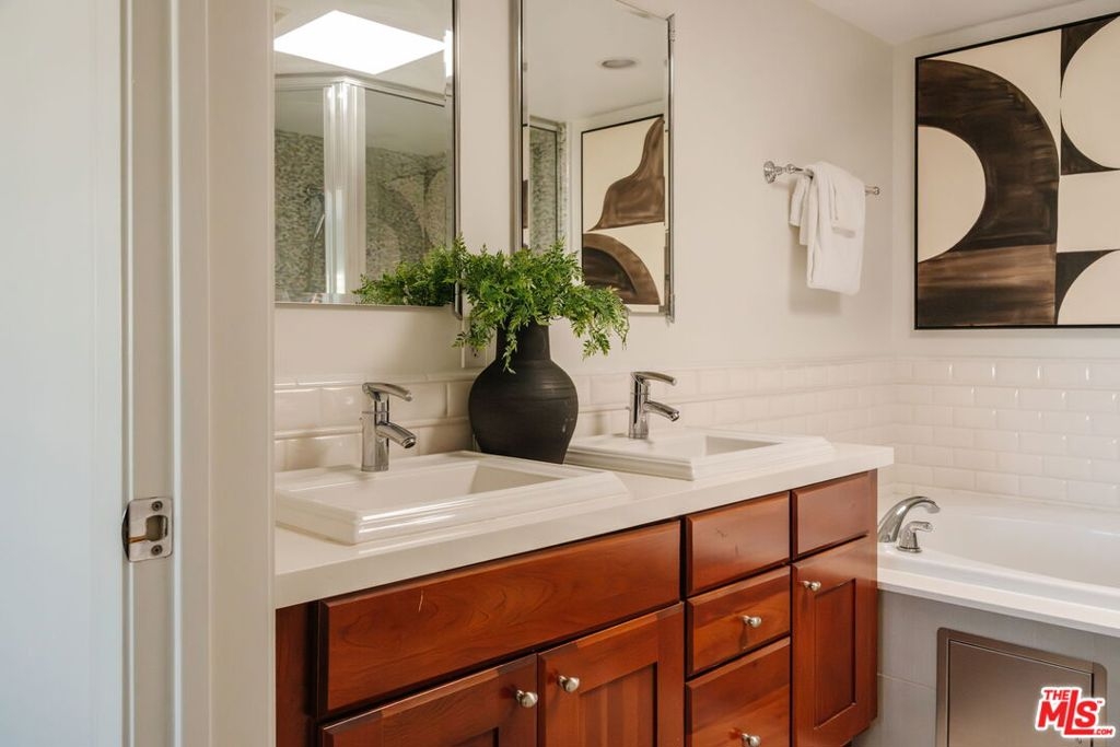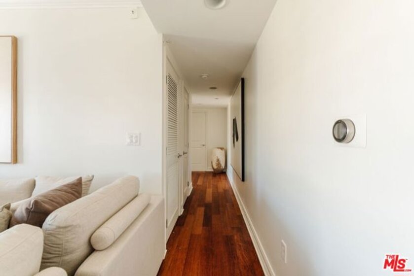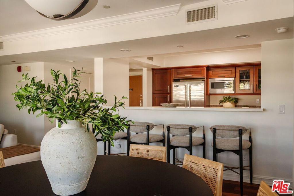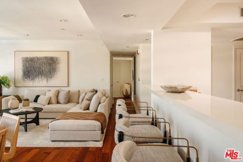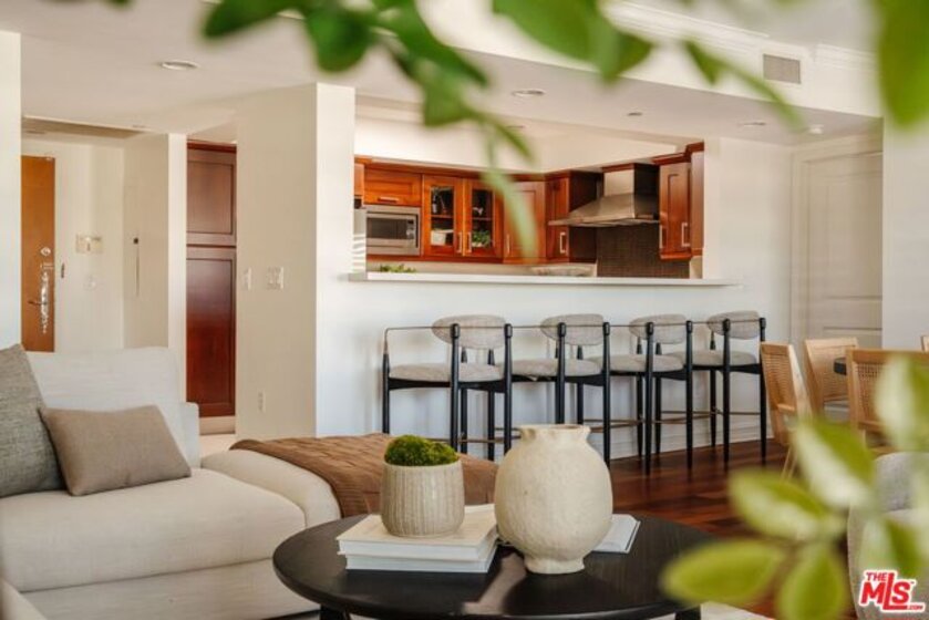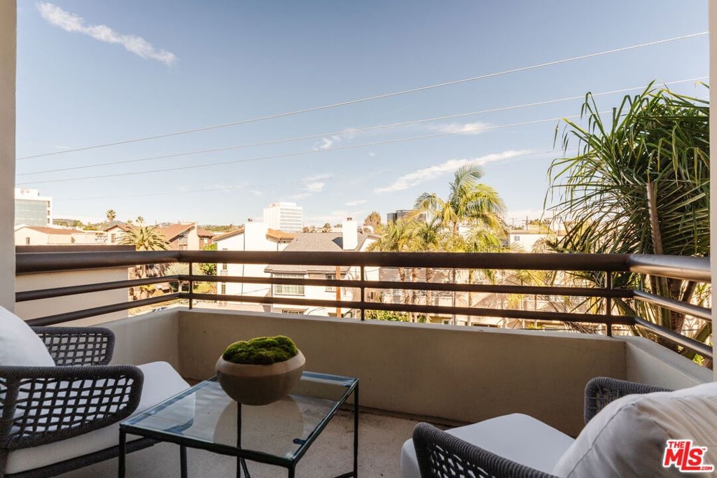 Finally...a single level 3BD/2.5BA penthouse in a prime Brentwood Village location. Enjoy unmatched distance to top restaurants, newly opened trendy cafes, unique boutiques, fitness studios and high-end grocery stores. This bright, top floor residence features newly refinished wood floors, newly installed carpets, skylights, and five private balconies for true indoor/outdoor living. The Chef's Kitchen includes a beautiful Wolf range, a Miele dishwasher, Viking fridge, wine cooler and an open breakfast bar. The private primary suite offers a large walk-in closet and spa-style bath with soaking tub, and a separate glass enclosed shower. The other two bedrooms are on the opposite side of the living area and share a full bath with dual sinks. Powder room is found in the entry, across from the kitchen. Located in a gated Mediterranean building, this rare penthouse combines luxury, privacy, and an unbeatable Westside location. Last penthouse in this building was sold more than a decade ago, they don't come on the market often (only three on the floor). Don't miss out on a fully front facing choice with only one shared wall and open hallways with western exposure.