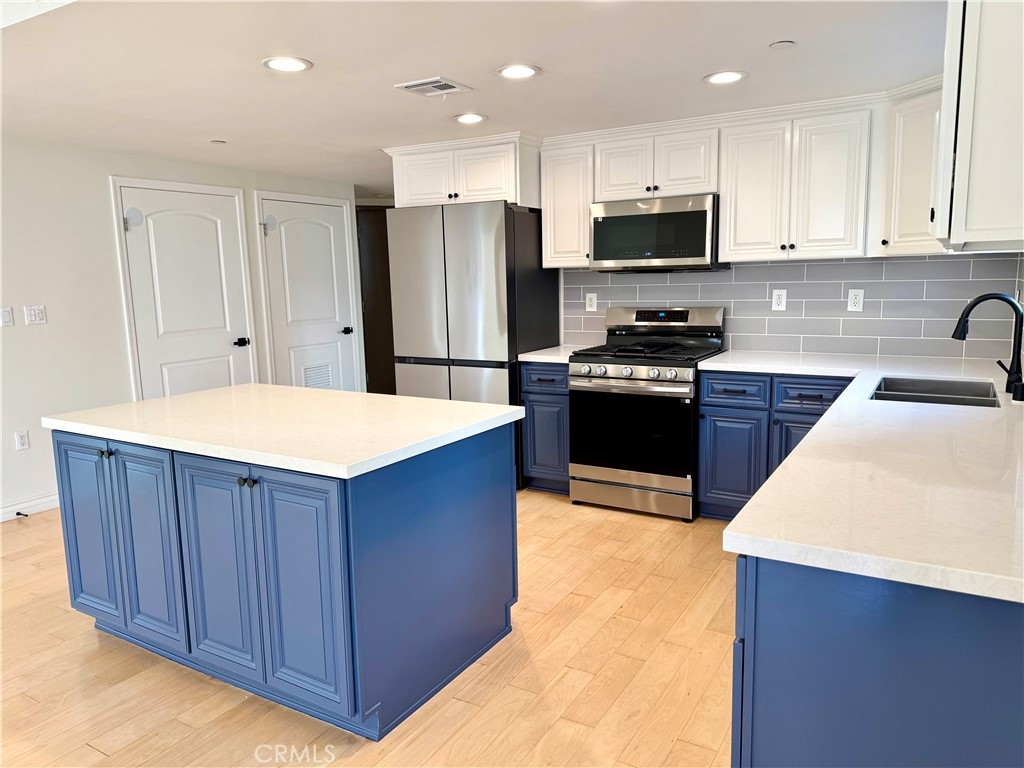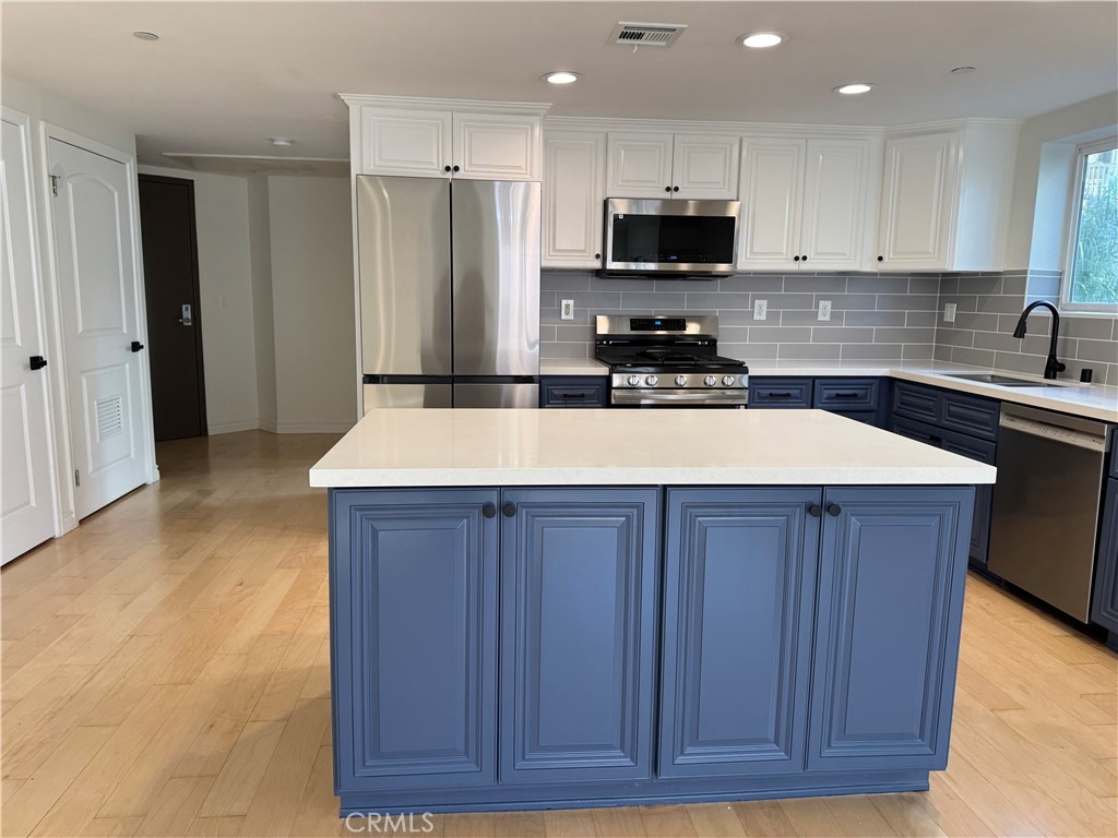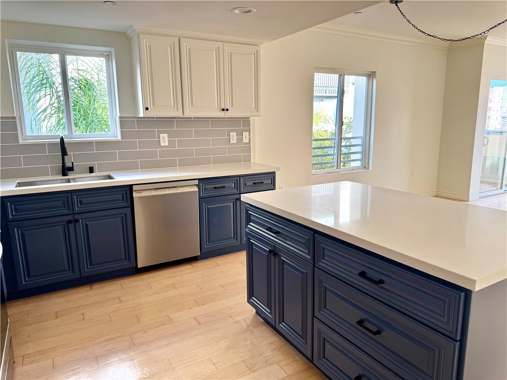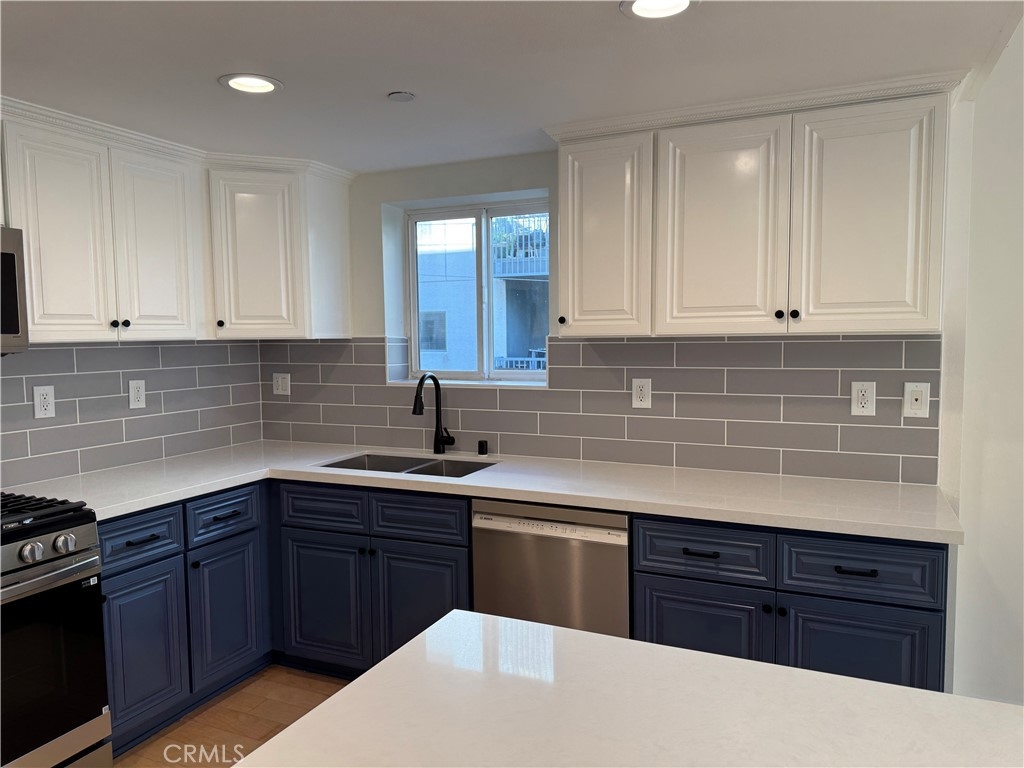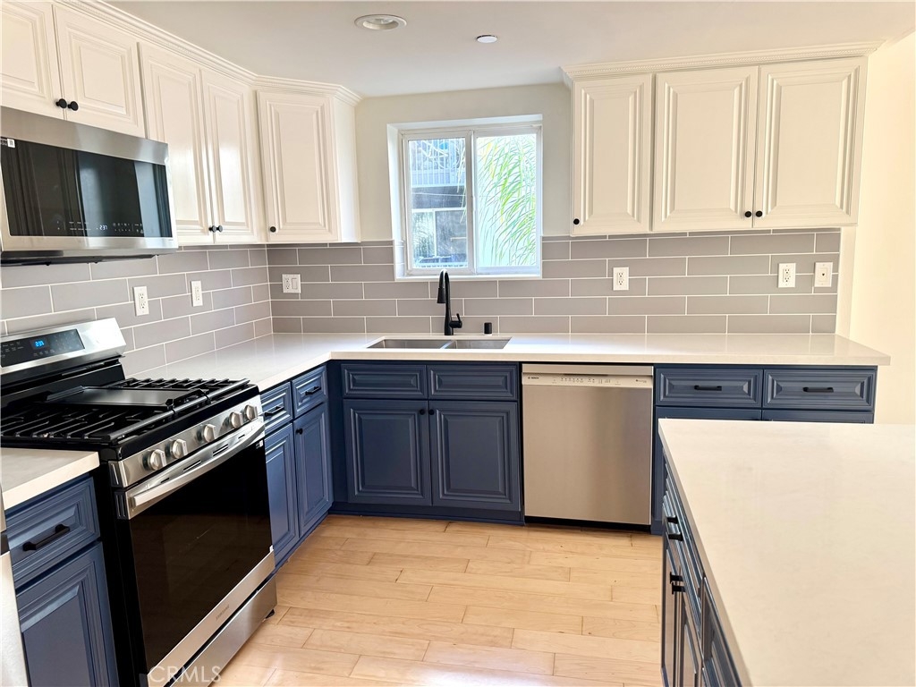Welcome to this stunning, fully remodeled 3-bedroom, 2-full-bath corner unit in the heart of Koreatown. Just completed in 2026, this “Designer-Done” residence offers a level of craftsmanship and finish rarely seen in the building. The show-stopping chef’s kitchen is the centerpiece of the home, featuring custom dual-tone cabinetry in a sophisticated rich navy and crisp white palette, accented with matte black hardware and pristine white quartz countertops. No expense was spared in the premium appliance suite, which includes a Samsung Bespoke 4-door French-door refrigerator with a hidden Beverage Center, a Wi-Fi-enabled smart gas range, and a whisper-quiet Bosch dishwasher. The open-concept living area flows seamlessly into a bright dining space highlighted by a modern statement pendant, perfect for both everyday living and entertaining. Retreat to three generously sized bedrooms with brand-new carpeting, offering comfort and privacy. Both bathrooms have been refreshed with quartz vanity tops, square vessel sinks, and sleek matte black fixtures. Additional highlights include In-Unit Laundry, two tandem parking spaces, and an assigned LARGE PRIVATE STORAGE in the garage—a rare and valuable feature in the area. Ideally located just one block from two major shopping malls and within walking distance to Koreatown Plaza, Galleria Market, and Wilshire Center, this home offers unbeatable convenience and vibrant city living.